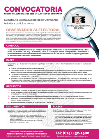 ¡El Instituto Estatal Electoral de Chihuahua invita a la ciudadanía a participar como observadoras y observadores electorales durante el Proceso Electoral 2020-2021!
