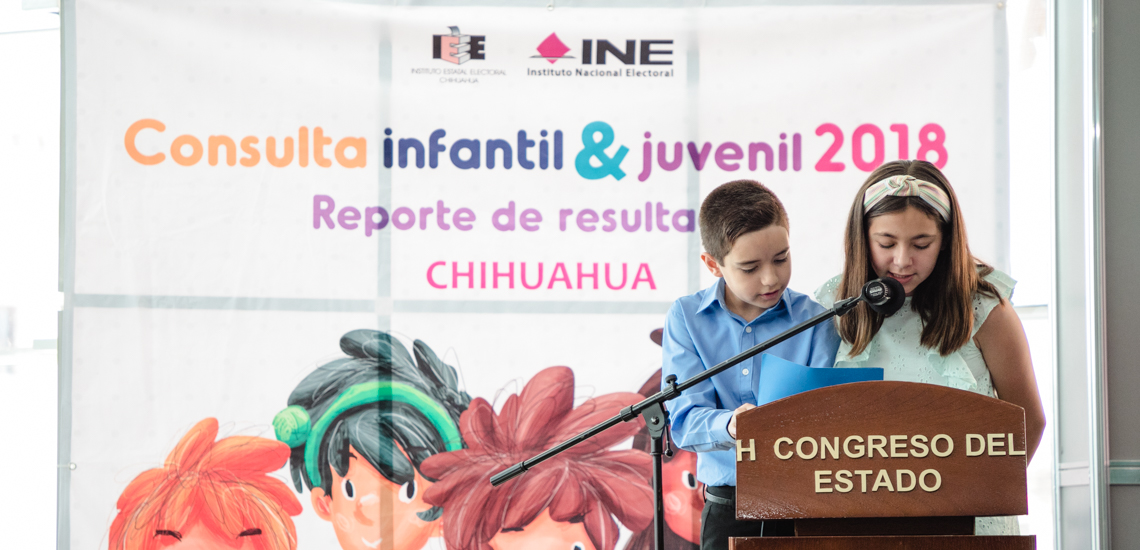 Los resultados correspondientes al estado de Chihuahua, de la Consulta Infantil y Juvenil 2018, fueron presentados hoy por las autoridades del Instituto Nacional Electoral (INE) en colaboración con el Instituto Estatal Electoral (IEE) la Secretaría de Educación y Deporte, y el Congreso del Estado.