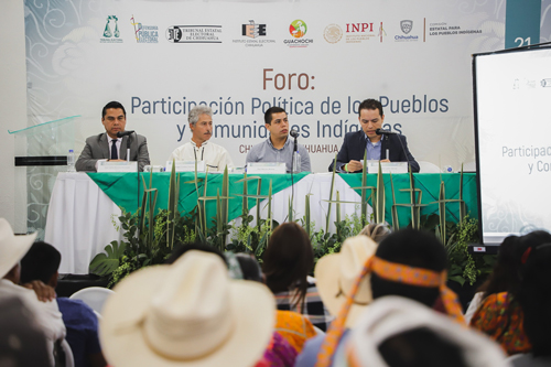 Chihuahua, Chih. - Representantes de diferentes sectores de la sociedad, instituciones electorales, integrantes de diversas comunidades indígenas, abrieron un diálogo dentro del foro “Participación Política de los Pueblos y Comunidades Indígenas”, en aras de encontrar oportunidades para hacer efectivos los derechos indígenas, asegurar su participación en la toma de decisiones y representación en los órganos de gobierno.